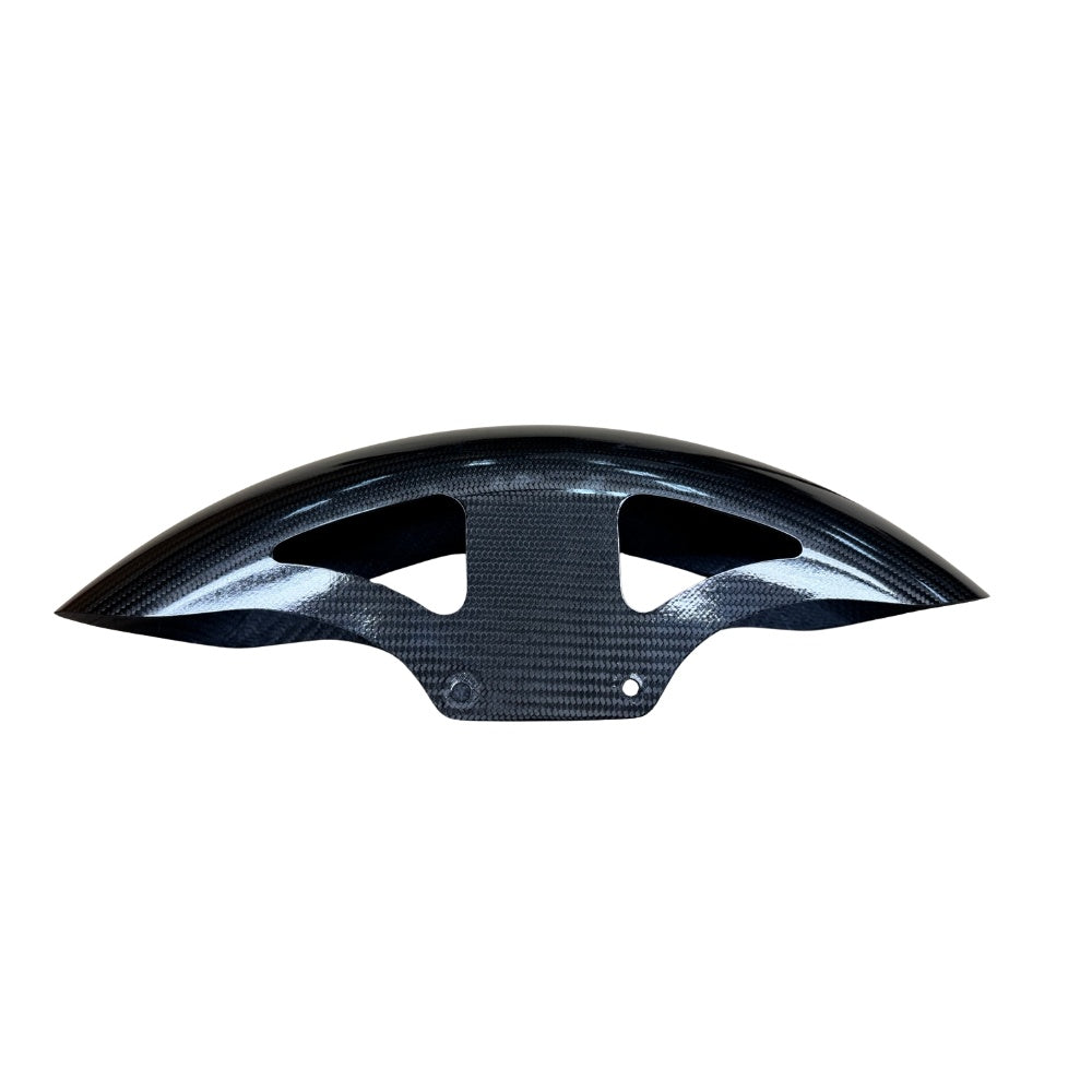 This 19" "Retro" carbon fiber fender for Harley models will set your bike apart. 14' & Up Model years. Approximately 1.5lbs vs. 10lbs on stock steel fender.